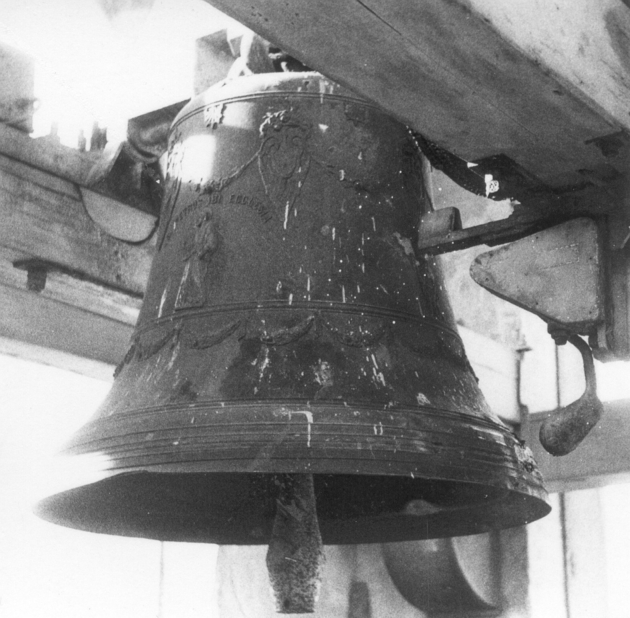 - ISCRIZIONI sul corpo - QUESTA CAMPANA REQUISITA DAL GOVERNO L'ANNO DI GUERRA 1943/ CON OFFERTE DI GUERRA DI TUTTI I PARROCCHIANI/ COL CONTRIBUTO DEI PAESANI ALL'ESTERO/ FU RIFATTA ED ACCRESCIUTA L'ANNO 1946/ ESSENDO RETTORE IL SAC. GINO MODENA -