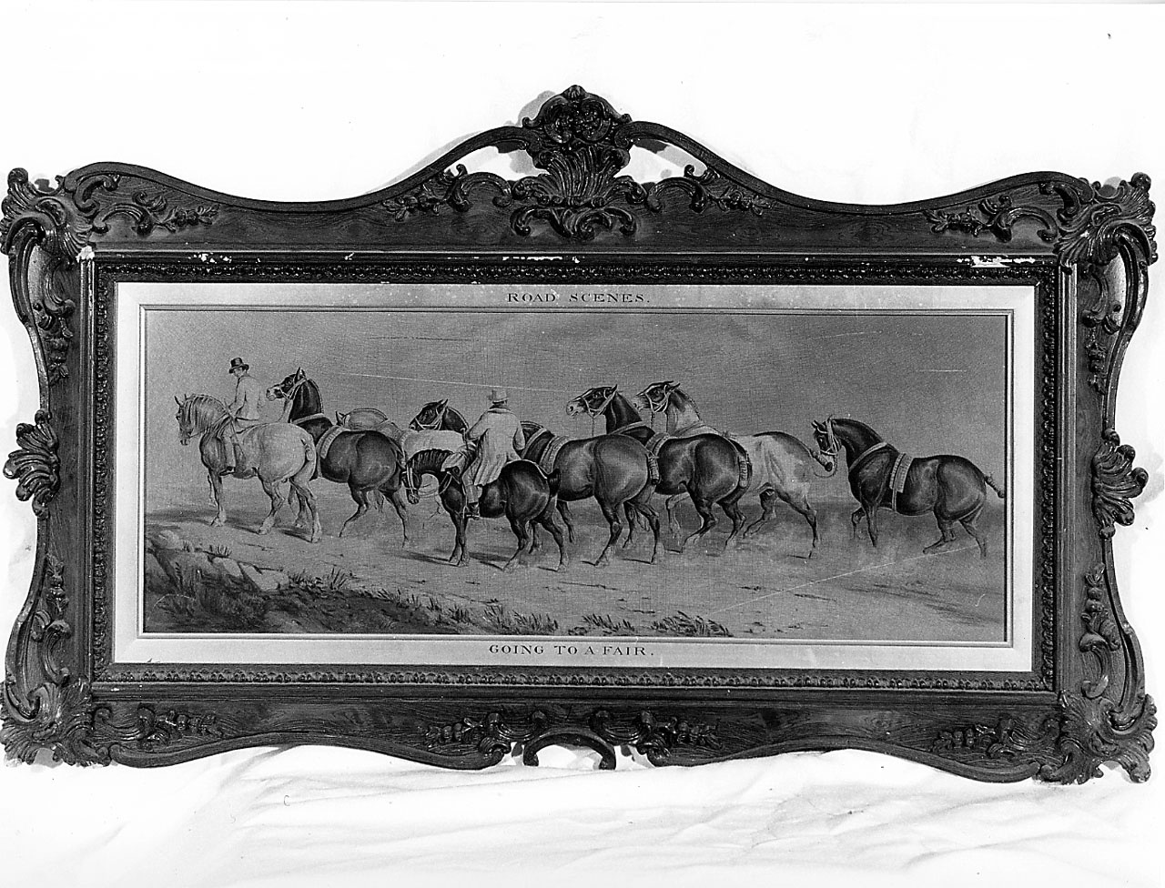 - NOTIZIE STORICO CRITICHE Si tratta di un'oleografia della serie "Forest's road scenes", composta da due stampe dello stesso formato e con cornici uguali, anch'esse fornite dallo stesso stampatore londinese Fores. La cornice (46x80cm) in legno intagliato, con rapporti in pastiglia imitante il legno di noce e filettature di ottone dorato. Quattro stampe di questo genere, della serie "Fores's national Sports" e raffiguranti gare ippiche, databili al decennio 1847-1857, sono conservate al Museo Stbbert di Firenze. Nella stessa Villa di Poggio a Caiano sono conservate altre tre serie dello stesso tipo, una intitolata "Fores's coaching incidents", l'altra "Fores's coaching recollections", la terza "Fores's stable scenes". La stampa venne inviata alla Villa di Poggio a Caiano nel 1867 dal direttore del mobiliare della Corona per gli edifici fiorentini Molinari, allo scopo di arredare l'appartamento di Vittorio Emanuele posto al primo piano. Nel mandato che l'accompagnava era descritta, insieme ad altre sette, come quadro a olio entro cornice intagliata a stampo