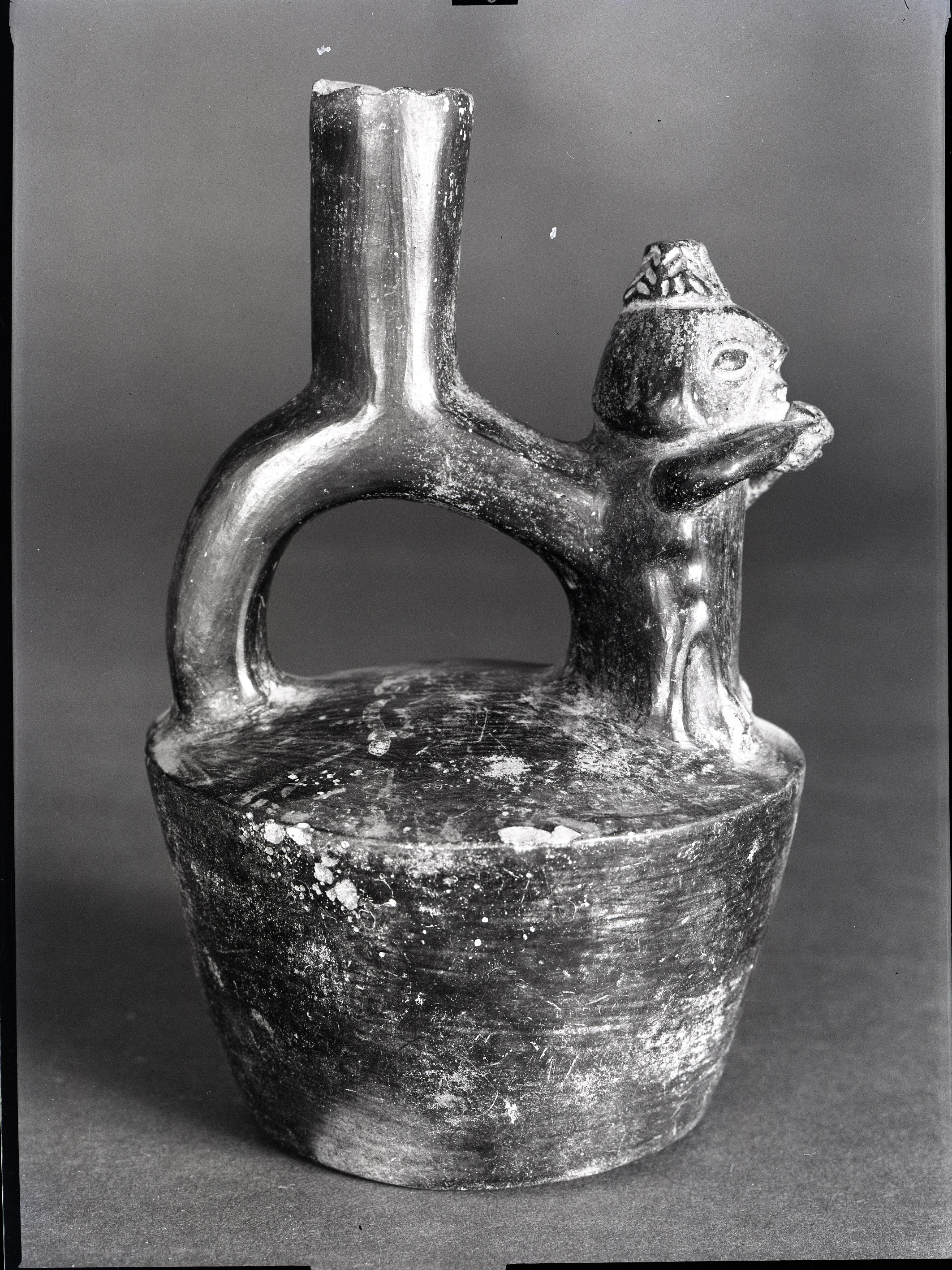 - NOTIZIE STORICO CRITICHE La ceramica Chimù, databile tra il XIII e il XV secolo e caratterizzata da vasi neri tipo bucchero, costituisce lo stile tipico dell'omonimo regno che dominò la costa settentrionale peruviana prima dell'invasione Inca. La maggior parte dei vasi veniva prodotta in stampi di terracotta; tra i più comuni vi erano quelli con ansa a staffa e collo cilindrico, spesso decorati da elementi plastici zoomorfi o geometrici