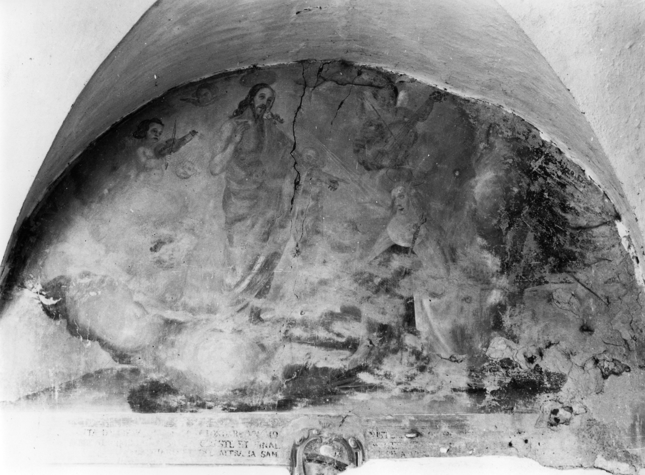 Personaggi: Cristo in gloria; Santa Teresa d'Avila in ginocchio. Figure: angeli musicanti; cherubini. Attributi: (Santa Teresa d'Avila) veste carmelitana; crocifisso