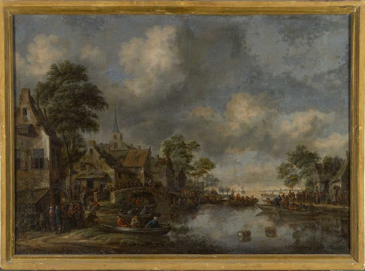 - NOTIZIE STORICO CRITICHE Il dipinto entrò nelle collezioni lorenesi con l'acquisto di una parte dell'eredità Hugford nel 1779 (cfr. AGF, filza XII, n.30). Tipica composizione di questo pittore minore olandese, seguace di J. van Ruisdael, specialista di scene popolari ambientate sulle rive di un fiume, che ripetè con poche varianti. Un quadro simile a questo, datato 1679, apparve ad un asta Sotheby's (Londra) del 9/7/1975, n. 39