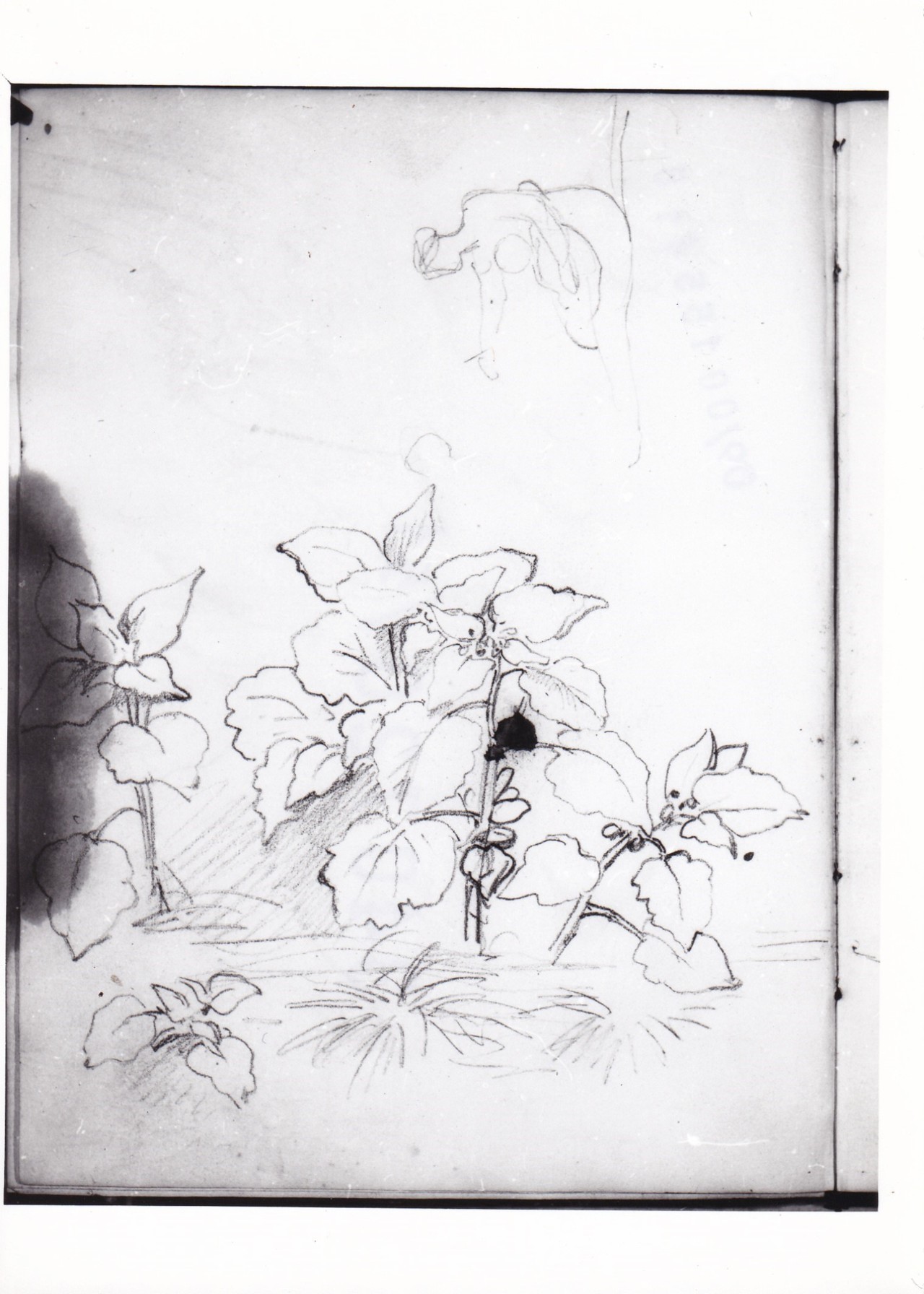 Recto: Studio di cigno con le ali levate, raffigurato di profilo sinistro; altro studio più piccolo di cigno con le ali raccolte sempre di profilo sinistro, studio di testa di cigno vista dall'alto. Verso: Studio con alcuni bassi cespugli di piante varie a foglie larghe; in alto, appena sbozzata, figura di donna accosciata, raffigurata di profilo sinistro, che tiene in braccio un bambino