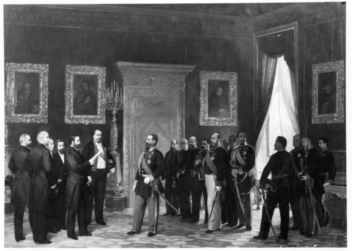 Vittorio Emanuele riceve gli Inviati Toscani con il Decreto dell'annessione della Toscana al Regno d'Italia