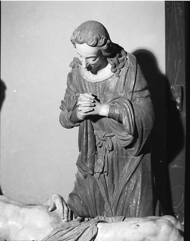 Anch'esso è inginnocchiato intorno al Cristo, San . Giovanni ha le mani giunte in preghiera