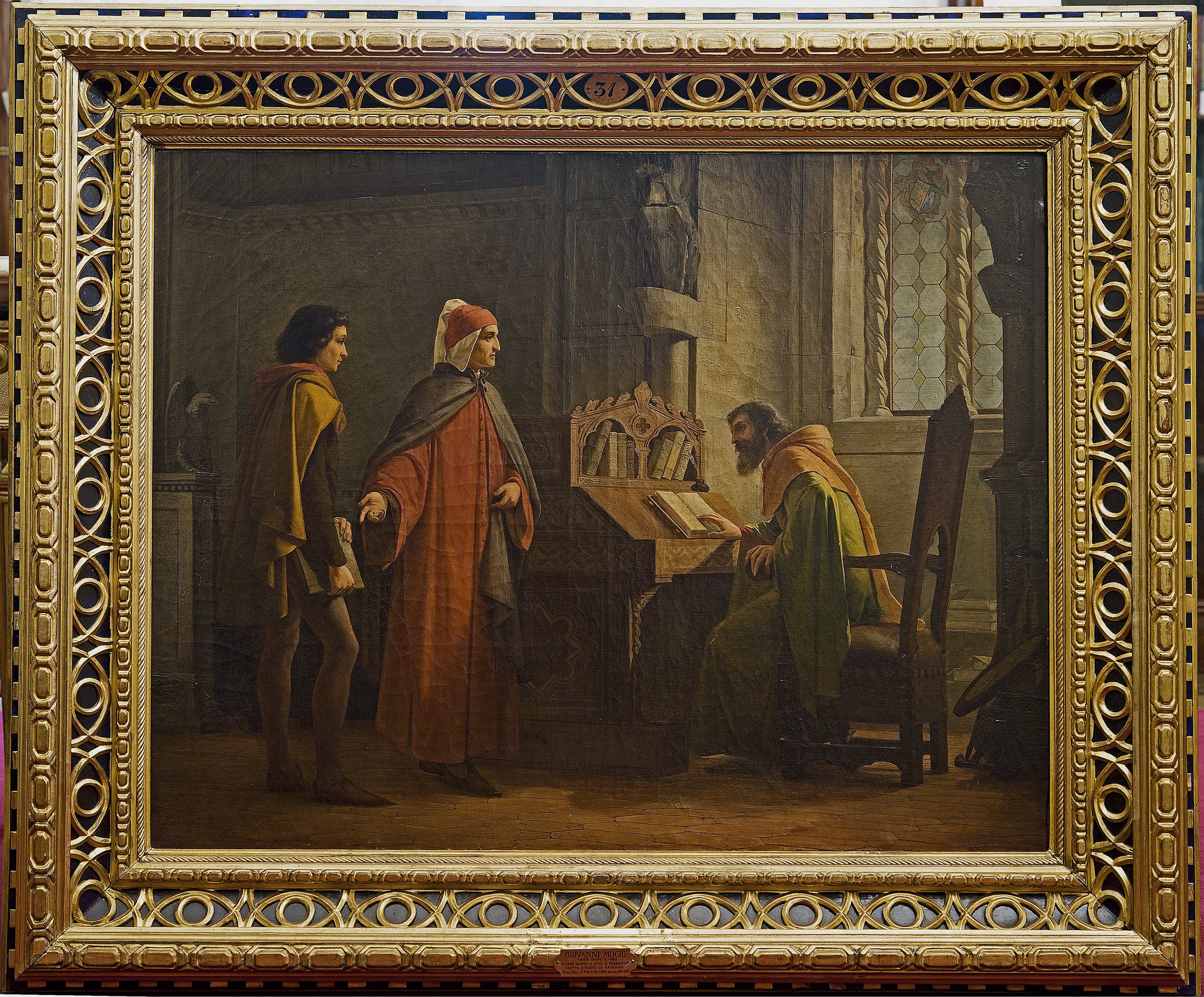 - NOTIZIE STORICO CRITICHE il dipinto, presentato nel 1855 nelle sale della Società Promotrice di Firenze e nello stesso anno, in autunno, all'esposizione dell'Accademia di Belle Arti, venne premiato con 600 francesconi dal Granduca, in cambio dell'opera valutata per 100 francesconi. Dopo essere stato collocato nel Palazzo della Crocetta, quindi alla Galleria di opere moderne dell'Accademia, fu dato in deposito alla Corte di Appello di Firenze dal 1913 al 1971. Sandra Pinto ha ricostruito nel 1972 la storia dell'opera inquadrando per la prima volta l'attività dimenticata del Mochi. Rimandiamo dunque alla completa scheda, che riporta i brani della letteratura d'epoca, ammirata delle qualità del giovane artista, anche se riteneva indicare alcune pecche, quali la figura troppo giovane di Giotto e la secchezza di tratto nei personaggi. Inoltre il dipinto offrì l'occasione di riaccendere il dibattito fra la scelta dei soggetti storici e la possibilità di trarne da questi dei quadri di genere per i quali si auspicava una maggiore disinvoltura ("L'arte", n.84, 20.10.1855). Possiamo tuttavia aggiungere che per altri il quadro del Mochi si offriva come esempio degno di essere imitato. Non a caso, la commissione della Società delle Belle Arti sceglieva tale opera, certamente garbata e gradevole rispetto alla produzione di genere storico di quel periodo, " a soggetto di (?)isione da offrirsi ai soci in dono annuale" ed eseguita da P. Suppino in occasione dell'XI anno sociale. Nel 1863 era ancora oggetto di vendita a L.16, come indicato nel Catalogo delle opere ammesse all'Esposizione solenne della Società Promotrice di Belle Arti in Firenze (Cat., p.19, n.11).La fortuna del dipinto continua per tutto il secolo, tanto che una copia di questo, eseguita da Elena Pucinotti, veniva esposta nel 1871 alla I Esposizione di lavori femminili (Cat., Firenze, 1871, p.95 n. 16)