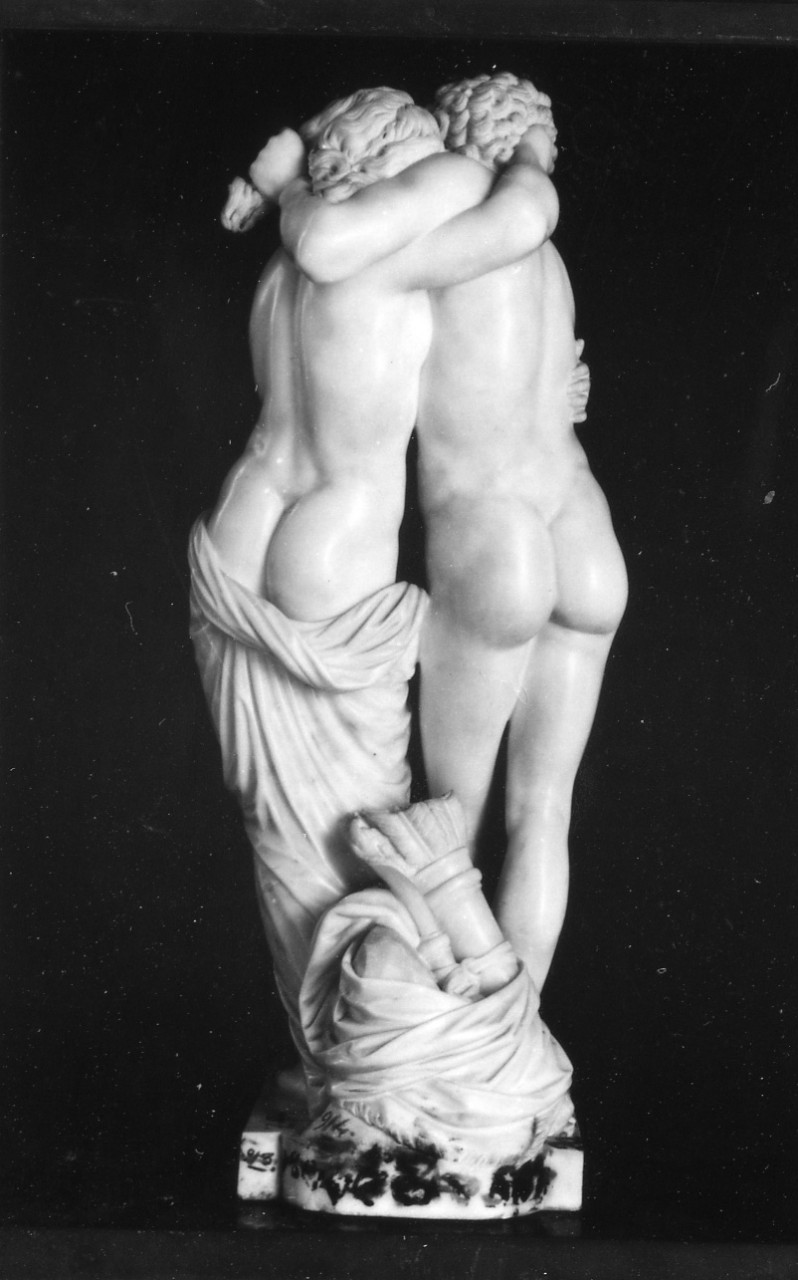 - NOTIZIE STORICO CRITICHE Lo schema del gruppo è desunto da un originale antico conservato nel XVIII secolo nella collezione romana del Conte Fede. La statua, attualmente di ignota ubicazione, appare riprodotta in un disegno eseguito da Pompeo Batoni tra il 1725 e il 1730 (cfr. F. Haskell - N. Penny, L'antico nella storia del gusto, Torino 1984, pp. 172-6). Il Carradori dovette concepire la scultura negli anni del suo soggiorno a Roma protrattosi, con alcune interruzioni, tra il 1772 ed il 1785 (cfr. P. Venturoli in: DBI, vol. XX, Roma 1974, pp. 633-7). Nello stesso periodo infatti, egli aveva realizzato anche il gruppo raffigurante Bacco e Arianna (Galleria Palatina inv. n. 913) per il quale, nel 1777, riceveva una gratificazione da parte del Granduca