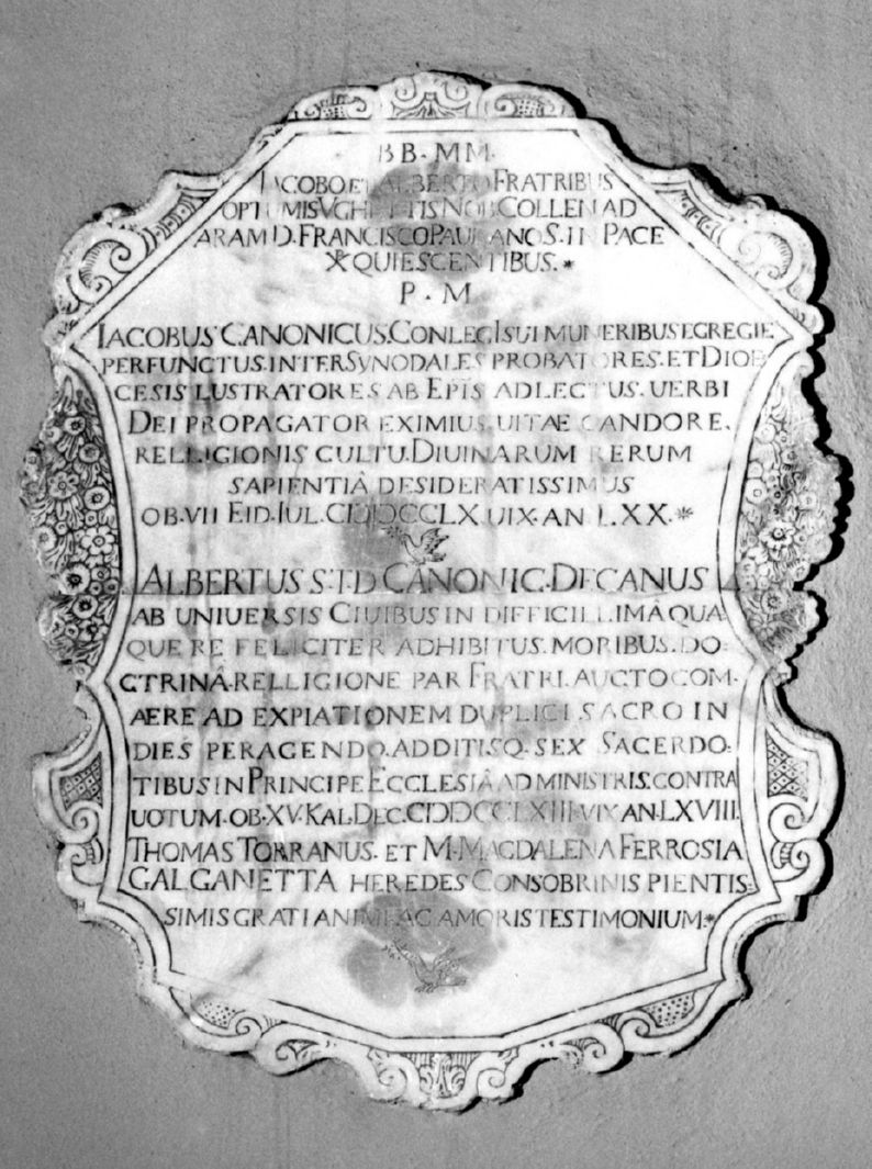 - ISCRIZIONI a tutto campo - BB(eatis) MM(artiris) / IACOBO ET ALBERTUS FRATRIBUS... (vedi foto) - lettere capitali -
