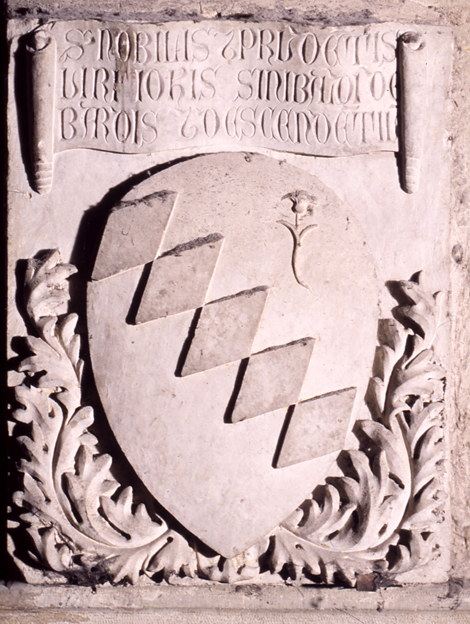 - ISCRIZIONI nel cartiglio - S.(EPULCRUM) NOBILIS ET PRUDE(N)TIS / VIRI IOH(ANN)IS SINIBALDI DE / BARDIS ET DESCENDENTIUM - caratteri onciali - a incisione - latino