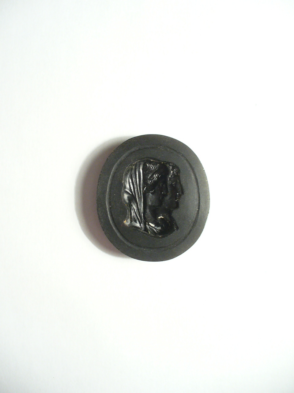 - NOTIZIE STORICO CRITICHE La matrice appartiene a un gruppo di stampi in vetro per la produzione di impronte in zolfo o scagliola commissionati all'antiquario romano Bartolomeo Paoletti nel 1796 e ultimati nel 1797. Il Paoletti riprodusse i cammei e gli intagli più importanti della collezione glittica dei granduchi di Toscana per un totale di oltre seicento esemplari (per ulteriori notizie si rimanda alla scheda OA 09/00649739). In particolare, la matrice qui considerata deriva da un cammeo conservato presso il Museo Archeologico Nazionale di Firenze (inv. n. 14566). Nel catalogo manoscritto di Tommaso Puccini dedicato alle gemme riprodotte dal Paoletti il cammeo è descritto nel modo seguente: "Onice. Busti jugati di femmina amendue con la tunica, il velo, il diadema. Lavoro di buon stile in una bellissima pietra poiché i capelli, la tunica e il velo del busto superiore sono di sardonico chiaro come il fondo, il rimanente è di un bianco perfetto" (BdU, ms. 47, n. 130 - 1064). Lo stampo è in vetro marrone
