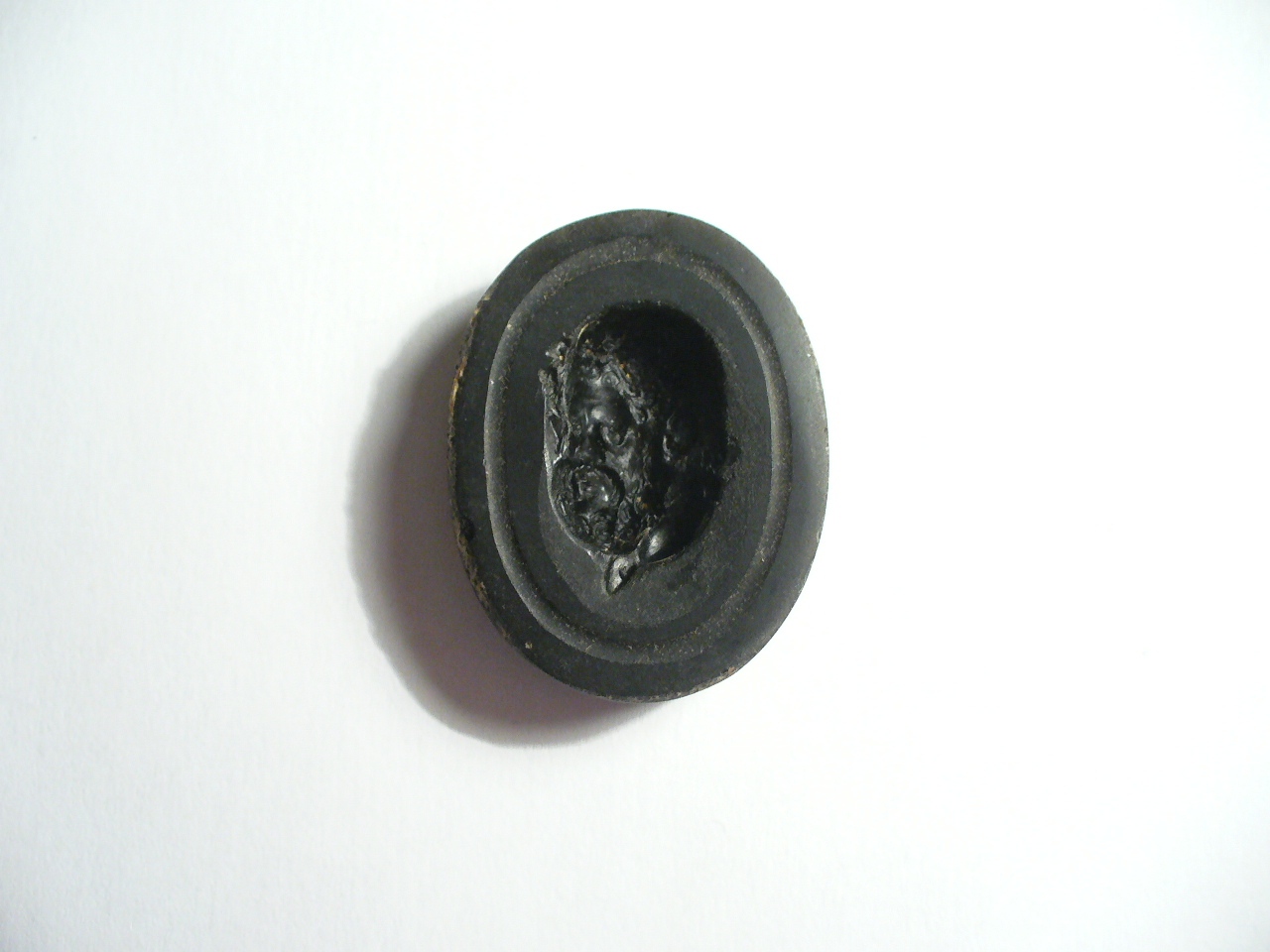 - NOTIZIE STORICO CRITICHE La matrice vitrea fa parte di una serie di stampi per la produzione di impronte in zolfo o scagliola tratte dai cammei e dagli intagli più importanti della raccolta granducale fiorentina. Tale serie fu eseguita dal romano Bartolomeo Paoletti, celebre antiquario e incisore di gemme, tra il 1796 e il 1797 (per ulteriori notizie si rimanda alla scheda OA 09/00649739). L'originale da cui deriva l'esemplare qui considerato è un cammeo conservato presso il Museo Archeologico Nazionale di Firenze (inv. n. 14497). Tommaso Puccini, conservatore delle Gallerie fiorentine, nella sua "Descrizione delle gemme pietre e paste più cospicue che in opera di Rilievo e di Cavo antica e moderna si conservano nella Dattilioteca della R. Galleria di Firenze", concepita come un vero e proprio catalogo dei pezzi riprodotti dal Paoletti, parla così della pietra: "Onice. Testa barbata di Ercole coronato d'ellera. Lavoro di gran stile eseguito in un bianco carnicino sopra fondo azzurro. Questa pietra è dell'istessa natura che la precedente. Gori Tav. 34 n. 8, Tom. I ne da una affatto simile a questa che dice scolpita d'incavo in corniola" (BdU, ms. 47, n. 62 - 1321). La matrice è in vetro di colore marrone