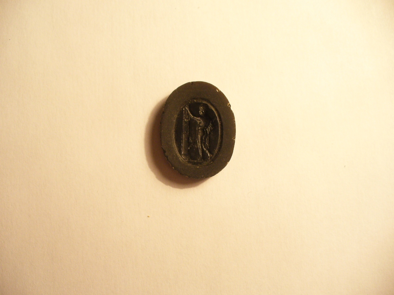 - NOTIZIE STORICO CRITICHE La matrice appartiene a un gruppo di stampi in vetro per la realizzazione di impronte in zolfo o scagliola commissionati al romano Bartolomeo Paoletti nel 1796 e ultimati nel 1797. Il Paoletti riprodusse i cammei e gli intagli più importanti della collezione glittica dei granduchi di Toscana per un totale di oltre seicento esemplari (per ulteriori notizie si rimanda alla scheda OA 09/00649739). In particolare, la matrice qui considerata è tratta da un cammeo antico conservato nel Museo Archeologico Nazionale di Firenze (inv. n. 14469). Nel catalogo manoscritto di Tommaso Puccini dedicato alle gemme riprodotte dal Paoletti il cammeo è descritto nel modo seguente: "Onice. Figura virile pileata stante colla tunica e l'asta nel braccio sinistro in atto di appendere il parazonio ad una colonna. Il Gori Tav. 36 n. 1 Tomo II crede con molta probabilità che rappresenti Elicaone, il quale risanato dalle ferite appese la sua spada nel tempio di Delfo. Lavoro di ottimo stile in un bel bianco sopra un fondo sardonico oscuro" (BdU, ms. 47, n. 34 - 1166). La matrice è di vetro colore marrone