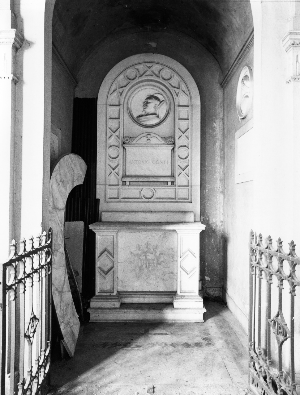 - NOTIZIE STORICO CRITICHE Non esistono notizie dettagliate sulla cappella funeraria della famiglia Conti che custodisce oltre all' edicola funeraria di Antonio Conti, anche la sepoltura di sua moglie, Ellen Astor Oxenham e la lapide posta da quest' ultima a ricordo del marito, morto nel 1884. Ad una datazione circoscritta all' ultimo quarto del XIX secolo è ascrivibile in particolare lo stile neogotico dell' altare, comune anche alla decorazione del pavimento e del cancello