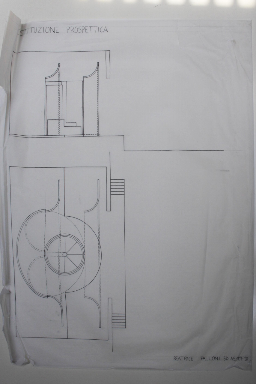- NOTIZIE STORICO CRITICHE Il disegno rappresenta lo studio scenografico di un atto per la rappresentazione teatrale “Macbeth”, la tragedia di William Shakespeare scritta nei primi del '600. L’opera fa parte del corso sperimentale di “Progettazione scenotecnica” dell’ex Istituto d’Arte di Porta Romana, che insegnava la progettazione della scena teatrale, considerando tutti i fattori legati alla scenografia, alla macchinistica, alla luministica, all’arredamento, alla costumistica e alla logistica del palcoscenico. Nel 1975 fu istituita la sezione di “Moda e Costume” come cattedra annessa alla sezione di “Tessitura” e, dieci anni dopo, nacque, come sezione sperimentale, quella di “Scenotecnica”. Successivamente, nel 1992, venne approvata dal Ministero dell’Istruzione, una sperimentazione nazionale e globale che andava ad affiancarsi ai tradizionali corsi di ordinamento (ovvero la “Sezione Sperimentale di Scenotecnica”). Il corso “Progettazione di scenotecnica” presso l’ex-Istituto, venne condotto, dal 1990 al 1997, dal Professore Giancarlo Mancini, che ne fu da subito il docente promotore