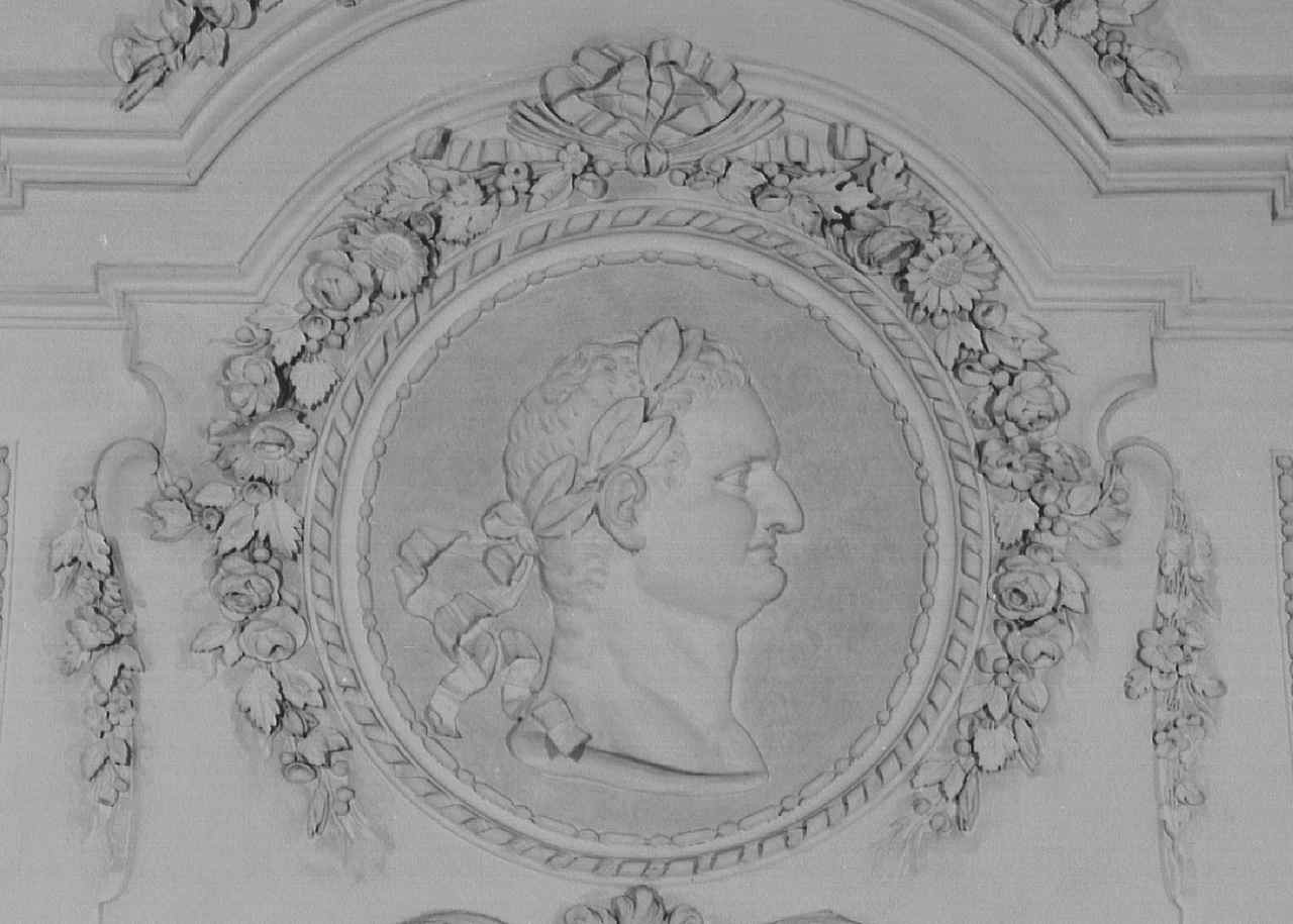 finte nicchie con busti di uomini illustri e motivi architettonici