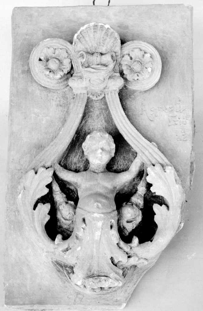- NOTIZIE STORICO CRITICHE Il gesso raffigurante forse il progetto per un battente di porta, è operadi un non meglio conosciuto Giuseppe Agresti. Si tratta di un lavoro di ornato prodotto forse nell'ambito della scuola di arti decorative situata nei chiostri di Santa Croce, che svolse attività fino al 1907, quando fu assorbita dall'Istituto d'arte