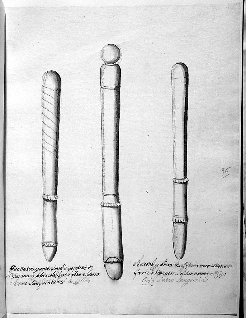 - ISCRIZIONI in basso al centro - Queste tre punte sono di pietra e servono per brunire il ferro nero lustroe / dorare e altri colori a caldo e sono facili a rompersi (...) - corsivo - a penna -