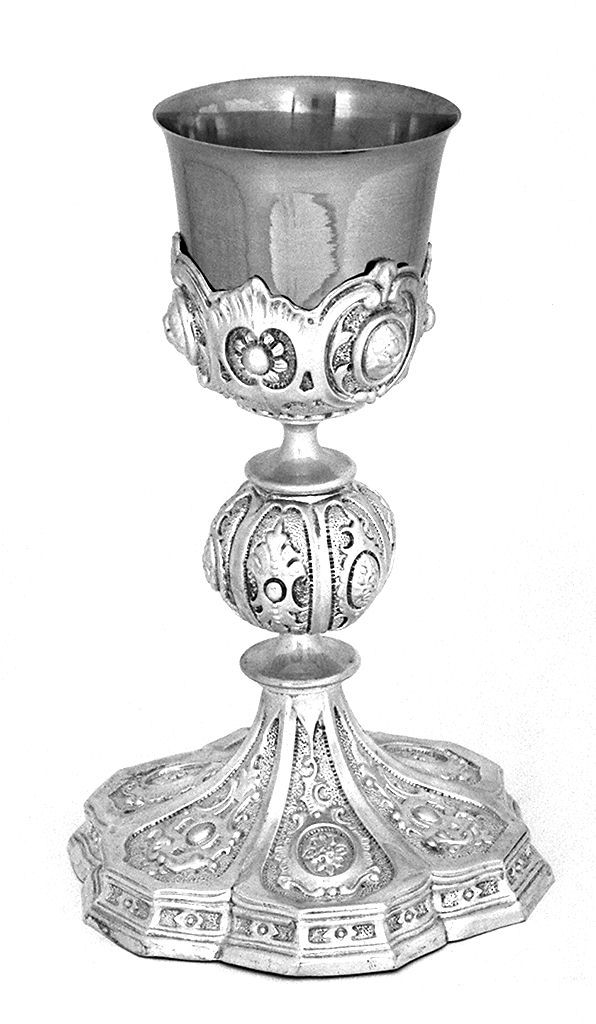 - NOTIZIE STORICO CRITICHE Sulla placchetta presente sotto il piede del calice sono riportati il nome dell'argentiere e la via romana dove presumibilmente era locata la sua bottega (Roma, via S. Agostino 1). Dell'artista non si conoscono né la data di nascita né quella di morte, tuttavia è documentata la sua presenza nel 1824 nella bottega dei genitori in via Flaminia, mentre risulta coniugato prima nel 1830 e in seconde nozze nel 1845. In base all'analisi stilistica del calice e ai riferimenti cronologici sopra citati è possibile circoscrivere la data di esecuzione dell'oggetto in esame al secondo-terzo quarto dell'Ottocento