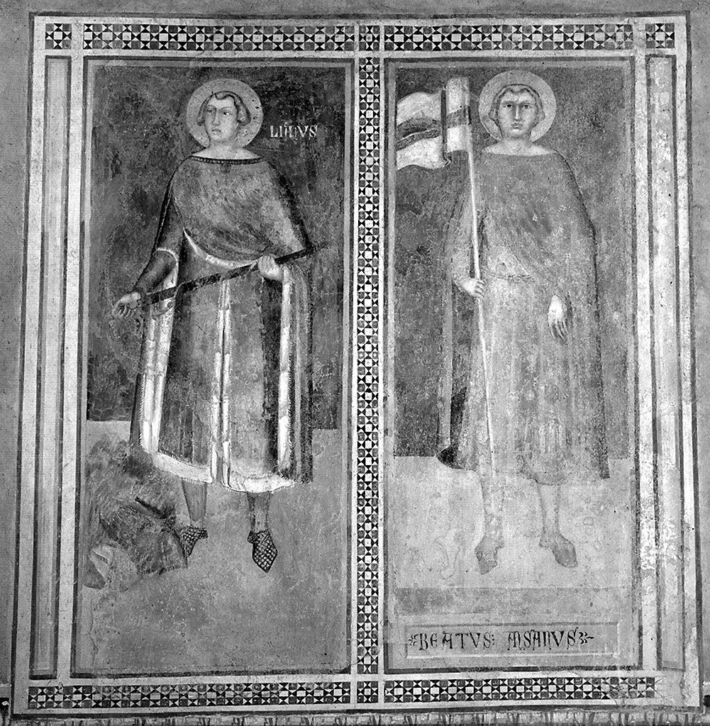 - ISCRIZIONI accanto a san Galgano - LI(---)VS - caratteri gotici -