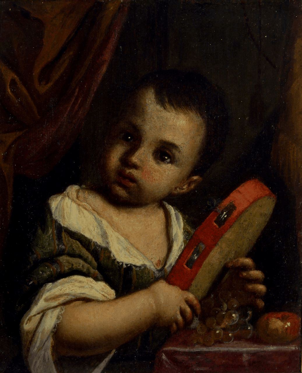 - NOTIZIE STORICO CRITICHE Il piccolo ritratto di "Bambina con tamburello" è ricordato da Francesco Brogi (1863) e da lui riferito ad anonimo artista del XVII secolo. Nel primo catalogo a stampa del Museo Civico (1909) l'opera viene giustamente assegnata al pittore ascolano Antonio Amorosi, attivo a Roma e conosciuto soprattutto come pittore di scene di genere, orientato verso il gusto delle bambocciate del Cerquozzi, ma in prevalenza influenzato dal danese Eberhard Keilhau, detto Monsù Bernardo (Anversa 1624-1687), come osserva giustamente Laura Martini. Il dipinto poliziano,dall'impasto morbido e dall'intensa luminosità, presenta strette affinità stilistiche con versioni affini eseguite dal pittore ascolano nell'ultimo decennio del XVII secolo, conservate in collezione privata a Ravenna (C. Maggini, Antonio Mercurio Amorosi pittore, 1996)