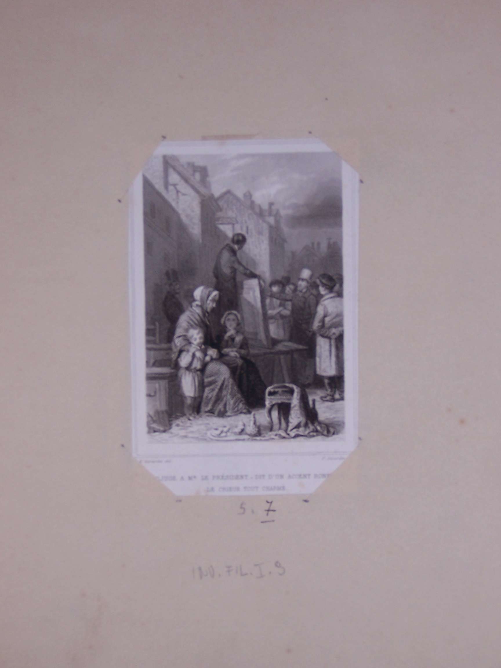 - ISCRIZIONI in basso al centro - ADJUGE' A Mr LE PRESIDENT. DIT D'UN ACCENT RONFLANT/ LE CRIEUR TOUT CHARME' -