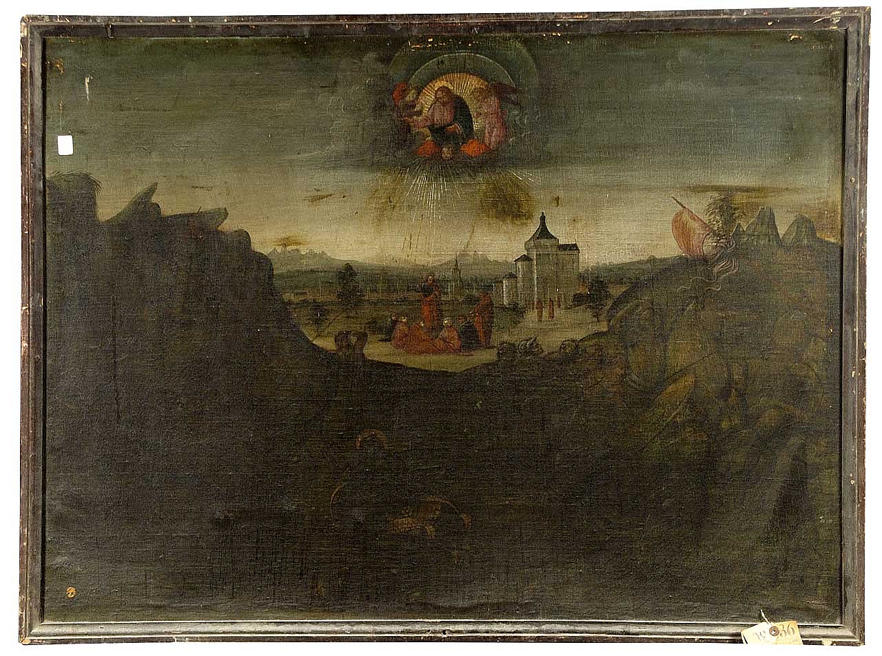 - NOTIZIE STORICO CRITICHE Il dipinto è giunto in precario stato conservativo con la superficie pittorica molto scurita e in molte parti quasi ossidata, non è quindi facilmente leggibile stilisticamente. Il soggetto raffigurato nel primo piano sembrerebbe rappresentare la caduta di Saulo, considerando la figura di cavaliere a terra al centro, il gruppo a sinistra e la figura di Cristo in una mandorla luminosa tra due angeli, in alto. Nel secondo piano sembra essere raffigurato un altro episodio della vita del santo: vediamo infatti San Paolo in piedi nell'atto di predicare ad un gruppo di ascoltatori seduti per terra. Nella scheda dell'archivio della Galleria Palatina il dipinto è attribuito al fiorentino Bartolomeo di Giovanni, attribuzione accettabile confrontando il dipinto con l'opera del maestro. Le quinte rocciose del paesaggio con le rocce tipicamente scheggiate appartengono al repertorio dell'artista: lo stesso possiamo dire degli edifici dal sapore nordico che si vedono nel paesaggio. Li ritroviamo quasi identici in un'altra opera dell'artista da datare intorno alla metà del nono decennio, una Adorazione del Bambino, di ubicazione sconosciuta. Anche il Cristo nella mandorla affiancato da angeli costituisce una iconografia tipica del repertorio figurativo di Bartolomeo di Giovanni. Le affinità evidenti nel confronto con la suddetta Adorazione inducono a datare la tela agli anni centrali del nono decennio