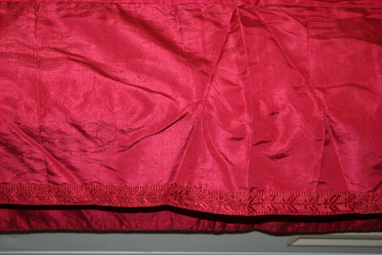 Tenda in ermisino cremisi. Bordura in tessuto operato in seta fondo ed opera cremisi