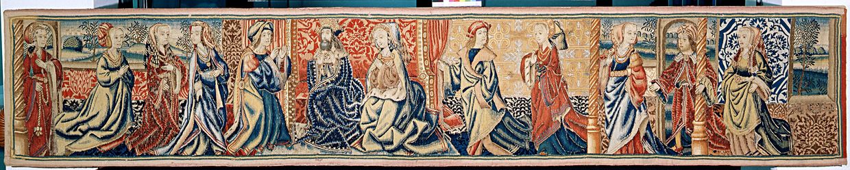 - NOTIZIE STORICO CRITICHE I quattro arazzi illustrano le storie di David e Betsabea, e sono attribuiti a manifattura fiamminga, forse addirittura di Bruxelles, intorno agli inizi del sec. XVI. I quattro arazzi, cui se ne aggiungono due che replicano con piccole varianti due dei quattro arazzi, provengono dalle collezioni medicee, e, come risulta dalle ricerche d'archivio di Lucia Meoni (2003), in particolare sono riconoscibili nei pendenti del cielo da letto descritti nel 1531 nella camera a terreno del palazzo Medici di Via Larga. Appartenevano al duca Alessandro de' Medici e passarono a Cosimo I o per eredità nel 1537 o per acquisto dello stesso da Margherita d'Austria, moglie di Alessandro nel 1539. Nel 1553 essi sono riconoscibili nei pendenti di cielo di letto che vengono immagazzinati nella Guardaroba di Palazzo Vecchio, dove saranno regolarmente inventariati in seguito