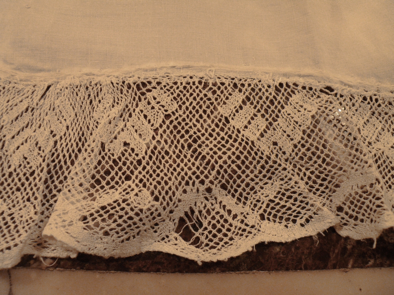 Tovaglia ornata su tre lati di trina