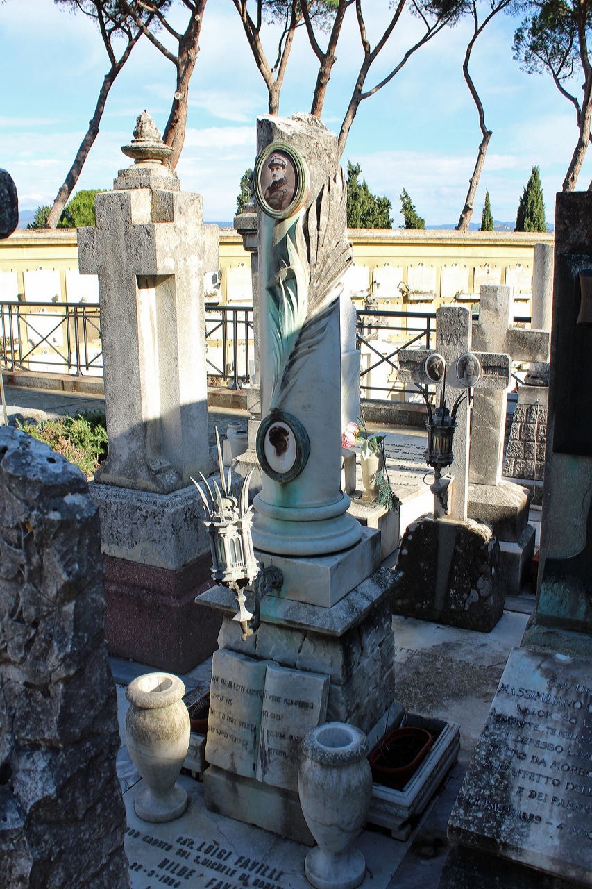 - NOTIZIE STORICO CRITICHE Il monumento presenta sulla colonnina la fotografia del defunto, una palma e una lampada votiva in bronzo. L'opera è dedicata a Luigi Favilli deceduto a Gorizia nel 1916