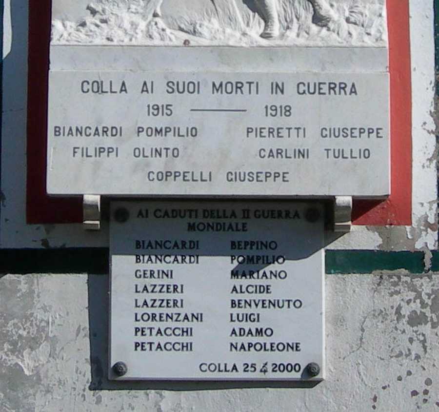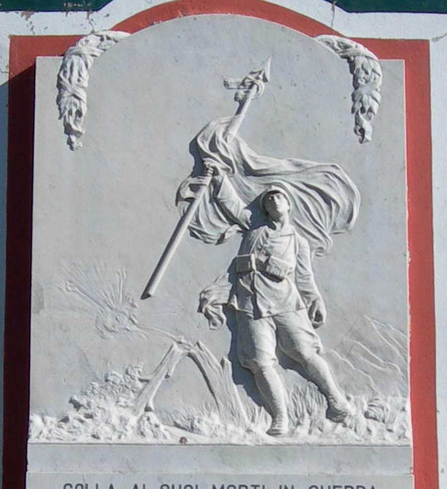 - ISCRIZIONI in basso al centro - COLLA AI SUOI MORTI IN GUERRA/ 1915 - 1918/ BIANCARDI POMPILIO/ FILIPPI OLINTO/ PIERETTI GIUSEPPE/ CARLINI TULLIO/ COPPELLI GIUSEPPE - capitale -