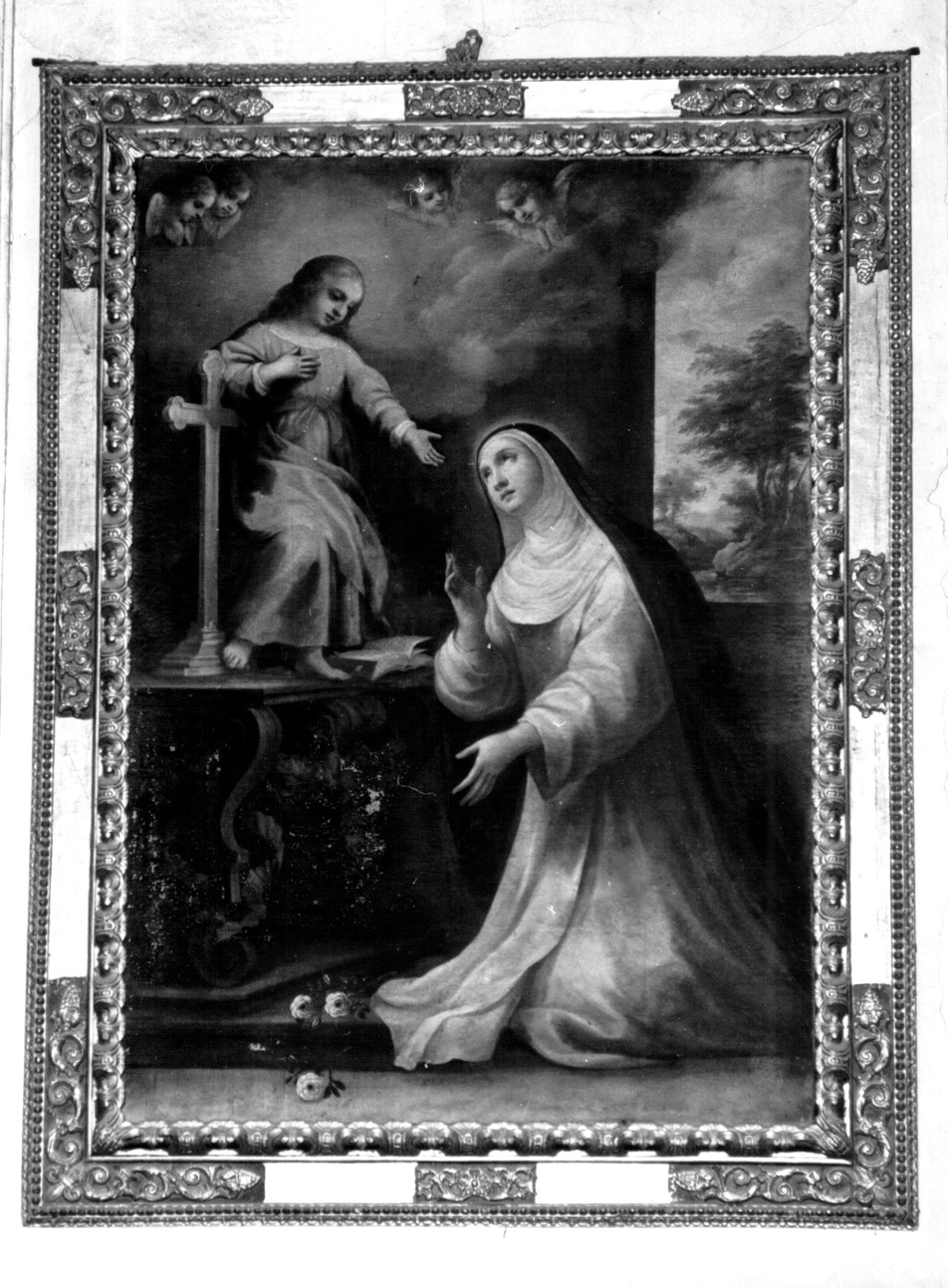 - NOTIZIE STORICO CRITICHE E' dotato di cornice coeva al dipinto. Art Past: il dipinto è stato attribuito recentemente a Francesco Allegrini (cfr. bibliografia). La datazione proposta è stata perciò riportata alla seconda metà del secolo XVII. Schedato come opera isolata, risulta associato in ROZ alla cornice nelle schede CEI. Il soggetto proposta nella scheda del 1994, individuava la santa come Caterina da Siena