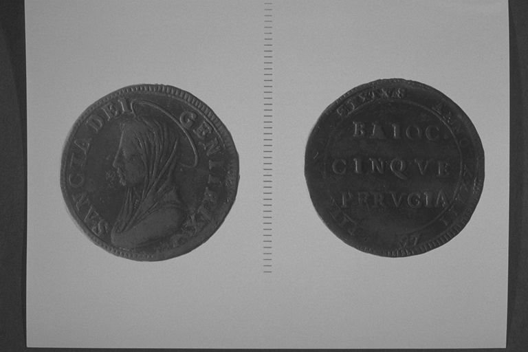 - NOTIZIE STORICO CRITICHE Come ricordato nell'inventario (1918, n. 1007), nel 1955 circa la Soprintendenza di Perugia acquistò dal signor T. Guerra Coppioli questo medagliere umbro che comprende 34 medaglie diverse per epoche, misure e materiale. E ' identificabile con quella descritta nell'inventario come "5 Madonnina 1797"