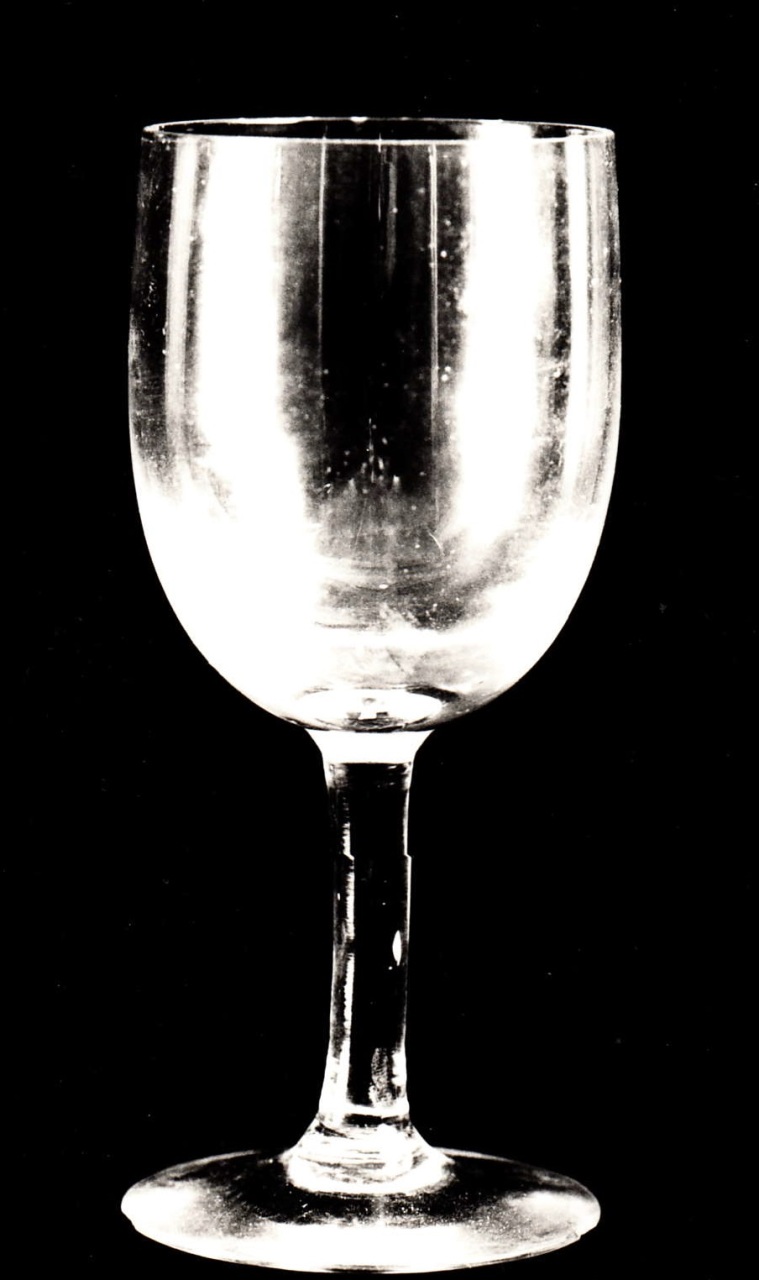 Il piede a forma circolare, il fusto liscio e il calice a campana rovesciata. La superficie esterna è priva di decorazioni