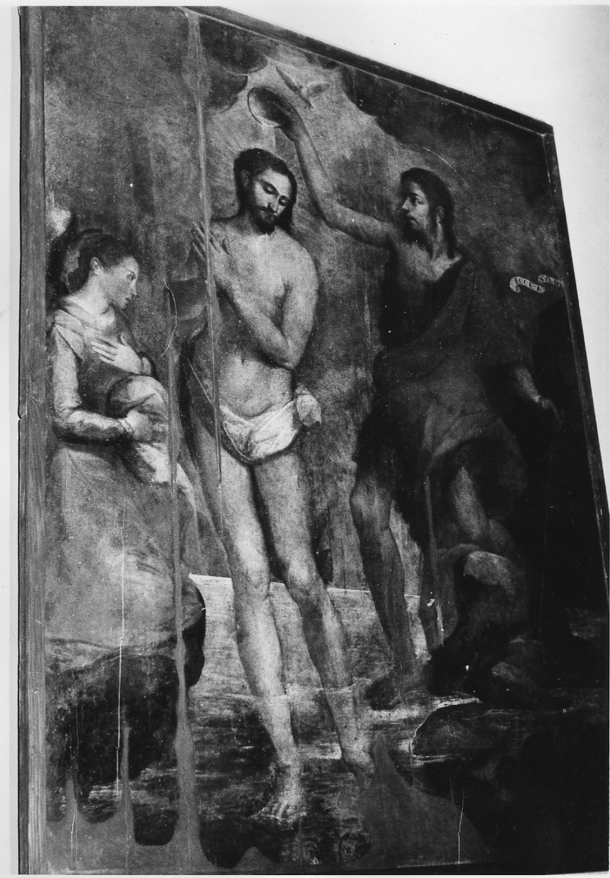 Nel dipinto è raffigurato il Battesimo di Cristo sul fiume Giordano. In alto è presente la colomba dello Spirito Santo