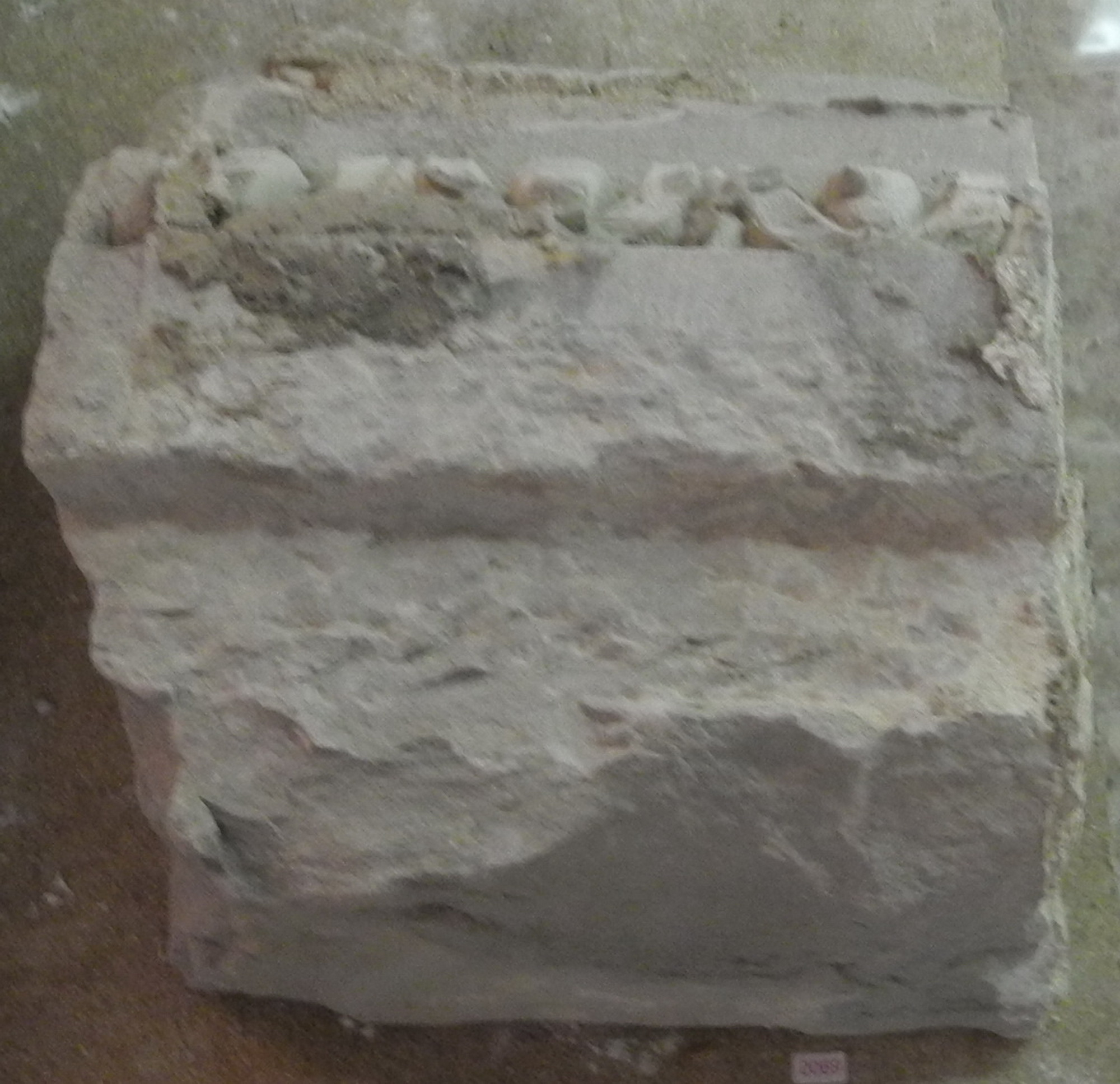 - NOTIZIE STORICO CRITICHE L'elemento avrebbe potuto far parte di un portale o di un camino o, ancora, di una mostra di finestra. La decorazione a ovoli separati da dardi ricorre infatti, all'interno del Palazzo, in numerosi esemplari delle tipologie indicate, anche se in nessuno di essi compare la sola fascia decorata a kyma ionico; si trovano infatti o completamente lisci oppure scolpiti anche nelle fasce superiore e inferiore. Come nella maggior parte degli oggetti conservati nello stesso contesto, non si conosce neanche la data di distacco dalla posizione originaria