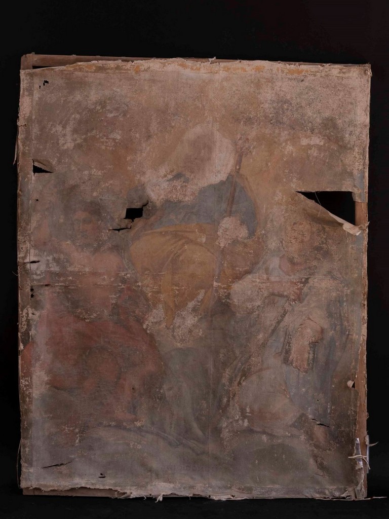 - NOTIZIE STORICO CRITICHE La rappresentazione del Santo sulla destra, probabilmente un Apostolo, è di difficile interpretazione a causa del pessimo stato di conservazione del dipinto. La messa in sicurezza dell'opera è stata iniziata nell’anno 2023 dalla Task Force Opificio delle Pietre Dure di Firenze