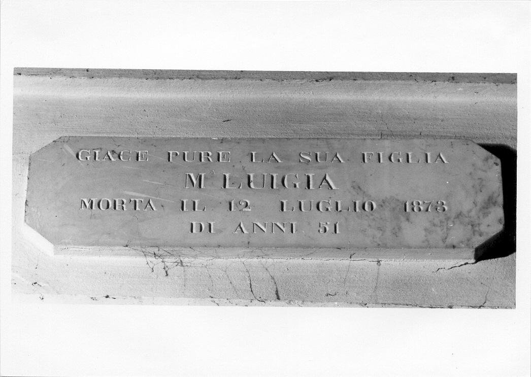 - ISCRIZIONI GIACE PURE LA SUA FIGLIA/ M.A LUIGIA/ MORTA IL 12 GIUGNO 1873/ DI ANNI 51 - lettere capitali -