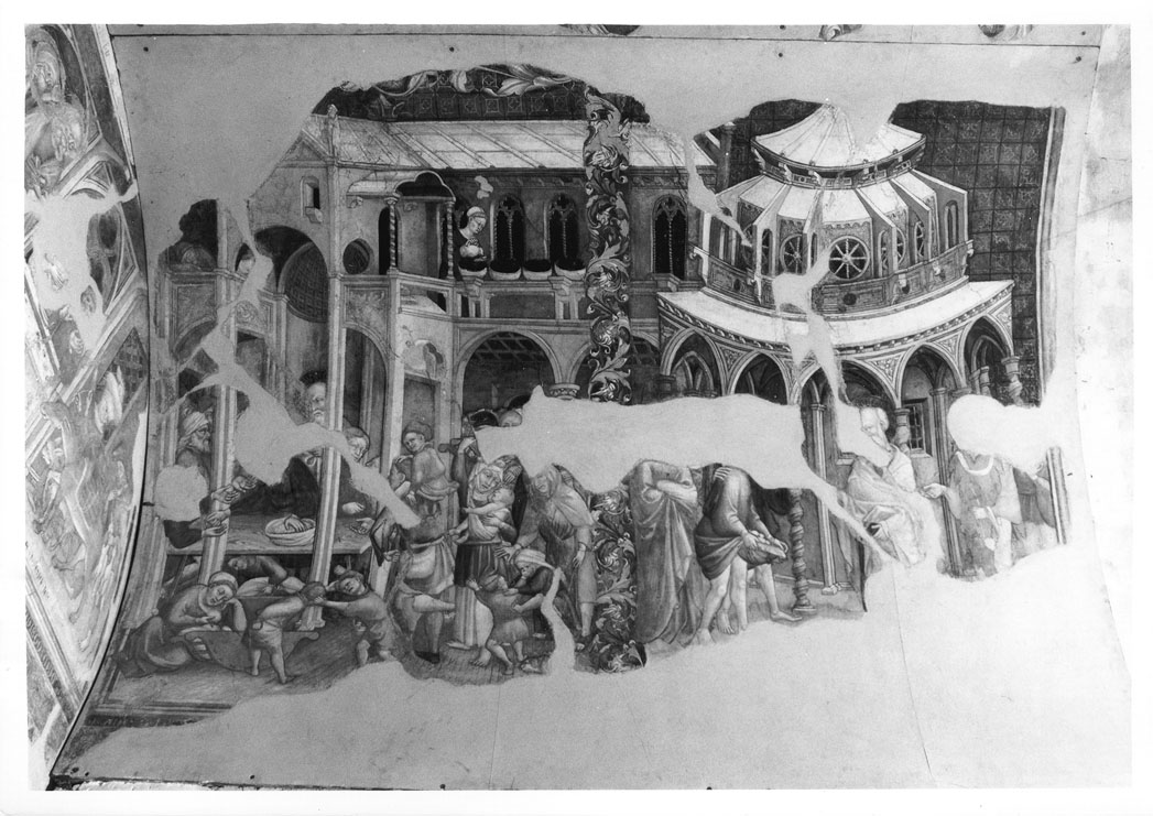 - NOTIZIE STORICO CRITICHE Il Serra vede la discendenza di questo affresco dalle "Storie di S. Andrea" attribuite ad Oliviero, maestro dei Salimbeni, che si trovano nella Cripta della Chiesa di S. Lorenzo in Doliolo di San Severino; lo Gnoli, il Rotondi, la Gherardini e lo Zampetti interpretano la scritta LIVIERO? tratta dal manoscritto del Rainaldi, come LAVORIO, e cioè credono che Oliviero operò con i suoi allievi Salimbeni, ma per il Rossi è una tesi insostenibile, e data questo ciclo all'inizio dell'attività dei due pittori