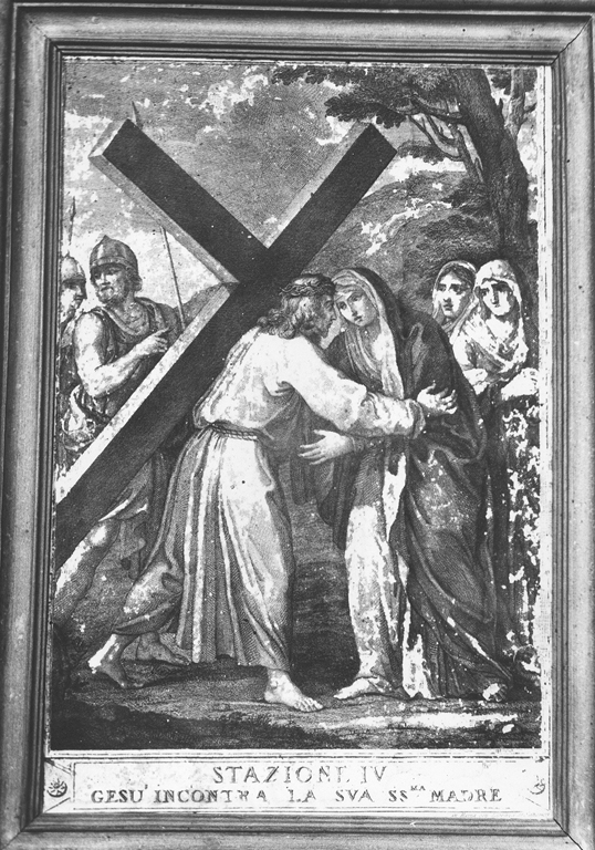 - NOTIZIE STORICO CRITICHE In tale incisione bisogna notare l'impostazione monumentale delle figure, resa ancora più evidente dal contrasto luministico (certamente voluto) tra la figura chiara del Cristo e quella scura, appesantita da un fitto reticolo, di Maria
