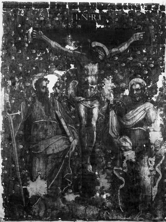 Personaggi: Cristo; San Pietro; San Paolo. Oggetti: croce