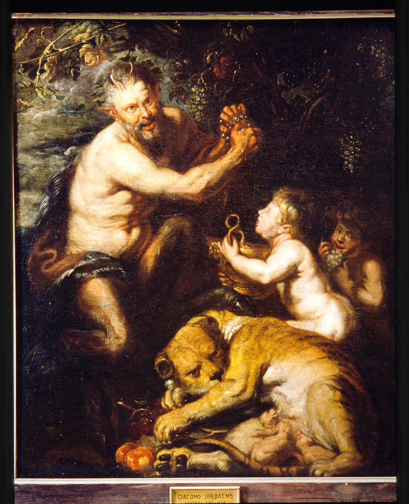 Il dipinto raffigura un Sileno che spreme tra le mani un grappolo d'uva ed un piccolo bacco raccoglie il succo con un cratere. A destra un fauno mangia un grappolo d'uva, in basso è accucciata una tigre, nutrice del dio mentre allatta tre cuccioli