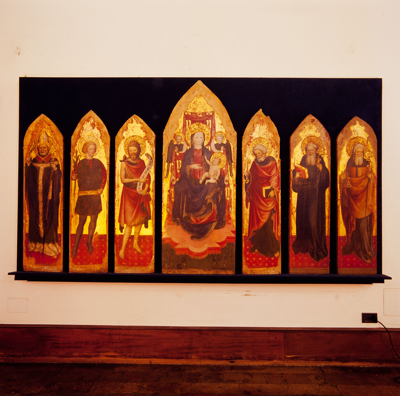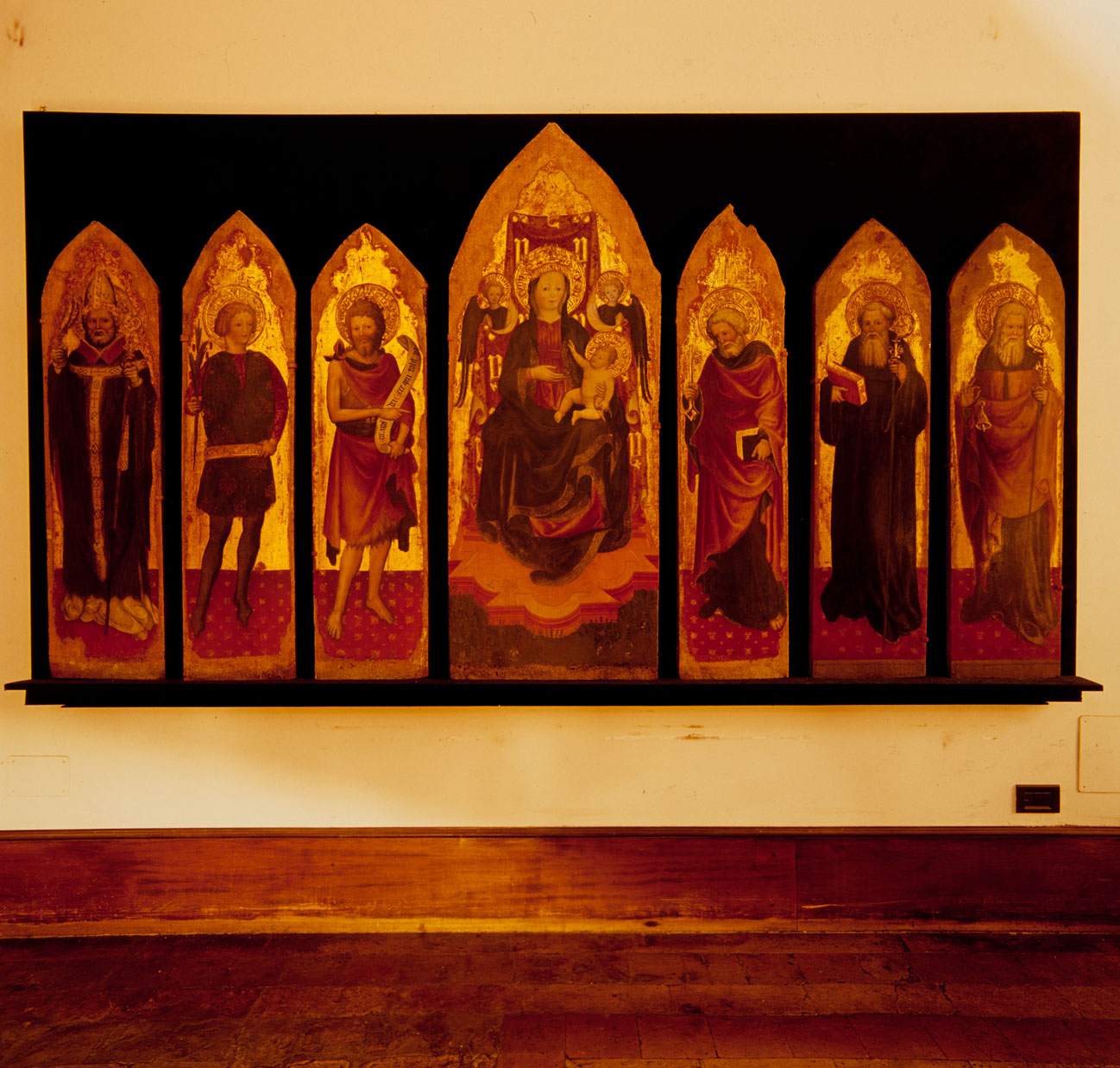 Il polittico è formato da sette scomparti cuspidati, uno centrale e tre per ogni lato