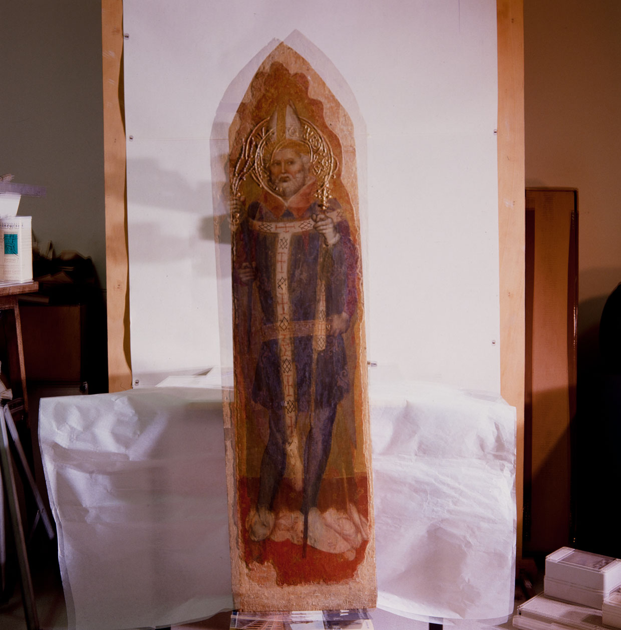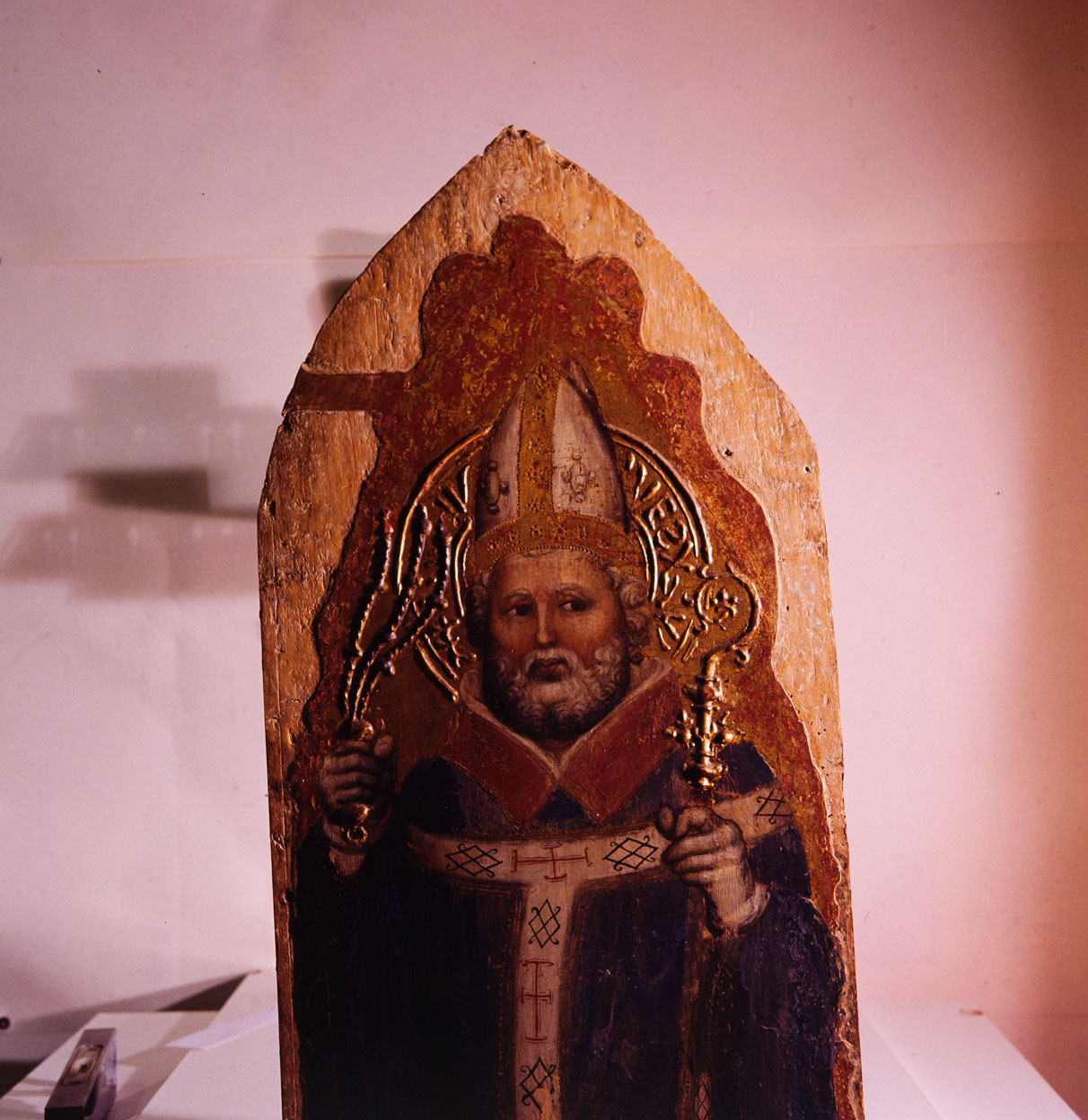 - NOTIZIE STORICO CRITICHE E' ignota la destinazione originaria del polittico già attribuito a Jacopino Cietario dal Van Marle (1927). Fu Longhi (1928) a definirlo di maniera milanese datandolo intorno al 1450 ed avanzando l'attribuzione agli Zavattari confermata da Baroni e Samek (1952) e nuovamente da Longhi nel 1957, il quale in tale occasione accostò il polittico agli affreschi con storie di Teodolinda (Duomo di Monza, firmati e datati dagli Zavattari nel 1444). Grazie alla Algeri (1981) è noto che in un documento datato 17 dicembre 1459 Ambrogio Zavattari fu pagato per un polittico destinato all'altare maggiore del Duomo di Milano. Pertanto la presenza nel polittico di Castel Sant'Angelo di due santi (Vittore e Ambrogio) venerati a Milano farebbe pensare all'opera destinata al Duomo milanese. Ma secondo la Ghidoli (1984) si potrebbe ipotizzare la destinazione per la chiesa milanese di S. Pietro in Gessate, affidata nel 1433 ai monaci di S. Giustina da Padova poi detti Cassinesi. Al suddetto ambito monastico farebbero infatti riferimento i santi Antonio Abate (padre del monachesimo occidentale) e Benedetto. Per la stessa Ghidoli il polittico è attribuile a più personalità della prima e della seconda generazione della famiglia Zavattari (Cristoforo, Francesco, Ambrogio, Giovanni, Gregorio) e la datazione dovrebbe essere spostata ad oltre la metà del 1400. Per quanto riguarda la storia conservativa, l'opera giunse a Castel Sant'Angelo privata dei due scomparti con S. Antonio Abate e S. Benedetto (che nel 1957 Longhi individuava in una collezione privata) acquistati successivamente. In precedenza, già smembrato, fece parte della collezione del Conte di Torino Vittorio Emanuele Savoia-Aosta (Longhi, 1957) come è confermato dal bollino presente sulla cornice ottocentesca in stile gotico con la quale pervenne nella collezione Contini e poi nel Museo di Castel Sant'Angelo