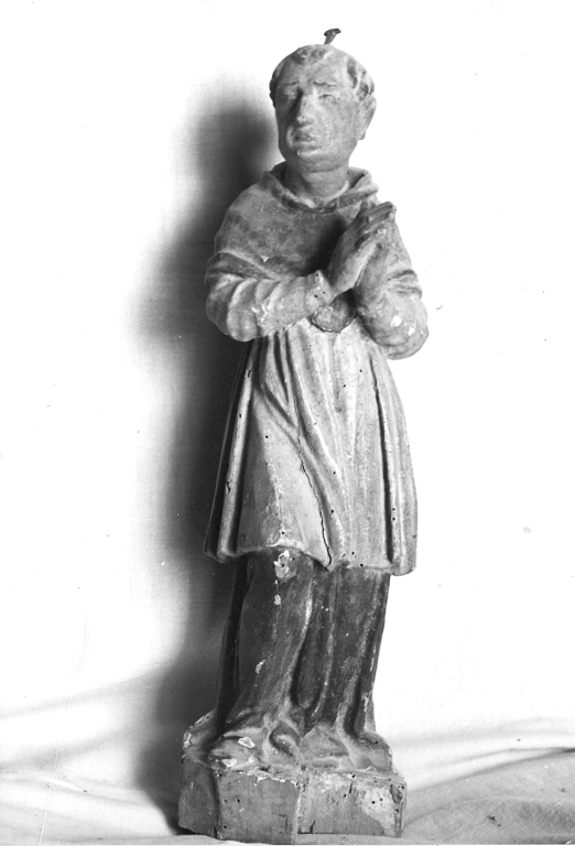- NOTIZIE STORICO CRITICHE Il santo, che verosimilmente faceva parte del tabernacolo ligneo della chiesa, è raffigurato secondo una linea a spirale, evidenziata dagli stacchi cormatici delle vesti. E' curata in modo particolare l'espressione patetica del volto