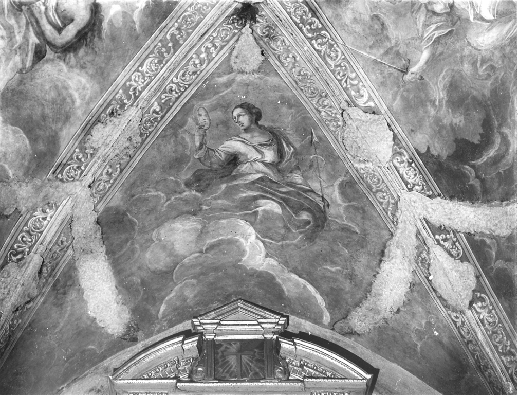 Virtù cardinali: Prudenza. Attributi: (Prudenza) specchi; freccia