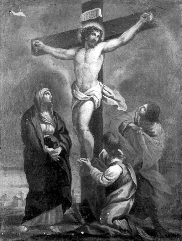 Personaggi: Gesù Cristo; Madonna; Santa Maria Maddalena; San Giovanni Evangelista. Strumenti del martirio: croce; corona di spine. Vedute: veduta di città