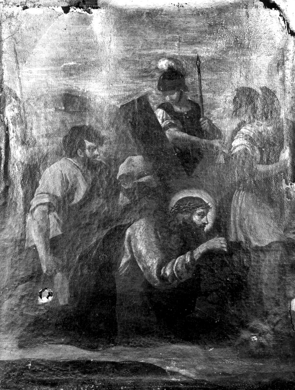 Personaggi: Gesù Cristo. Figure: carnefice; soldati. Armi: lance. Strumenti del martirio: corona di spine; croce