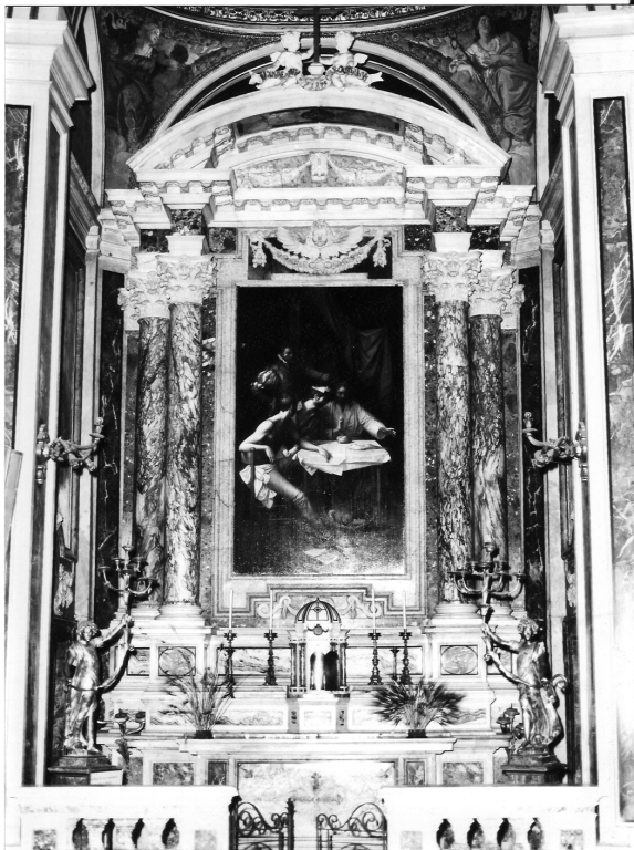 - NOTIZIE STORICO CRITICHE L'altare atttuale sostituì nel 1904 quello dalle linee molto più semplici (vedi bib.) fatto erigere da Carlo Ghirlandaio alla fine del Seicento. La presente opera architettonica incorpora in grossa parte un altare di maestranze romane dell'Ottocento proveniente da S. Maria Liberatrice (Hager) integrato con alcuni elementi aggiunti agli inizi del Novecento