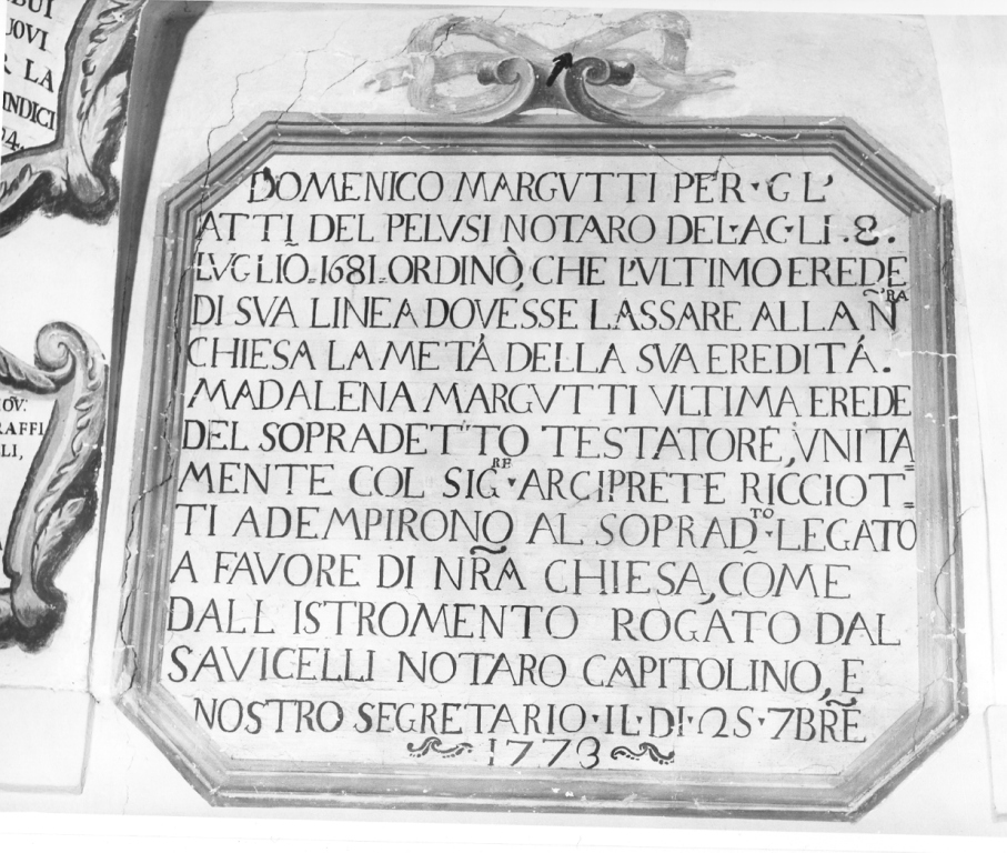 - NOTIZIE STORICO CRITICHE Si ricorda l'eredità lasciata dalla Confraternita dai coniugi Margutti 1773