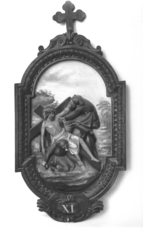 Personaggi: Gesù. Figure maschili: due uomini. Oggetti: croce